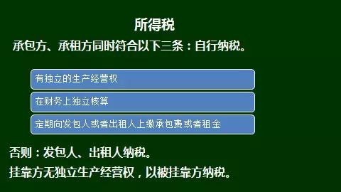 第二条 单位以承包、承租、挂靠方式经营的,承包人、承租人、挂靠人(以下统称承包人)以发包人、出租人、被挂靠人(以下统称发包人)名义对外经营并由发包人承担相关法律责任的,以该发包人为纳税人。否则,以承包人为纳税人。